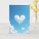 This greeting card shows a wide blue sky that fades from a deeper blue at the top to a lighter shade near the horizon. In the middle, a bright white cloud forms a clear heart shape, with soft edges that look gently warmed by sunlight. A few smaller, thinner clouds drift below and around it, and one tiny cloud in the distance also hints at a heart. There’s no text on the front, so the sky and heart cloud carry the whole message. It feels like a quiet reminder that love can show up in simple, unexpected places, which makes it meaningful to give. You could share it with a partner or a close friend to say “I’m thinking of you” without needing many words ❤️. It’s an easy way to share Valentine’s Day sentiments 🥰.