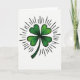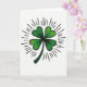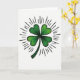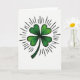 This card features a four-leaf clover centered on a bright white background, with four heart-shaped leaves that feel like they’re leaning in close, like friends sharing a quiet secret 💚. The leaves are painted in layered greens, shifting from deep emerald to lighter yellow-green highlights that look like light landing on the surface. Visible brushstrokes give the clover a textured, natural look, keeping it from appearing flat. A strong black outline traces each leaf and runs down the simple stem, sharpening the shape and making the green stand out. Around the clover, short black lines radiate outward like a little spark or a lucky discovery ☘️. The layout stays focused and uncluttered, drawing attention straight to the clover and its gentle, heart-like curves. There’s no extra wording, just the clover in the middle with the black rays scattered evenly around it. The radiating marks form a loose halo of tiny black strokes encircling the green leaves.