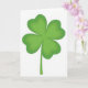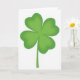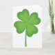 This card features a single three-leaf shamrock centered on a stark white background, with each leaf shaped like a soft heart that leans toward the others like close friends sharing a quiet moment 💚. The green shifts gently from a lighter spring tone along the upper curves to a deeper emerald near the lower edges, giving the clover a smooth, rounded look. A slim stem drops straight down from the meeting point of the leaves, keeping the design grounded and tidy. The lighting is suggested through subtle shading rather than sharp contrast, so the leaves look slightly raised instead of flat. A short St. Patrick’s Day greeting sits near the top in green lettering, leaving plenty of open space around the symbol. Smaller matching text appears near the bottom in a lighter green, aligned neatly under the stem. The overall layout stays centered and uncluttered, with the shamrock occupying most of the space and a tiny ☘️ accent near the lower corner.