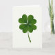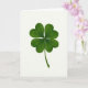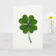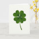 This design shows a single four-leaf clover centered on a stark white background, drawn with careful botanical detail that makes it feel close and intimate. The four heart-shaped leaves spread evenly from a slender stem, like they’re leaning toward one another in a gentle, friendly huddle 💚. Soft, even light smooths out strong shadows, letting the leaf textures and curved edges show clearly without distraction. Greens shift from deeper emerald near the base to lighter, slightly translucent tones along the rounded tips, giving the clover a fresh, just-picked look ☘️. Fine veins lace through each leaflet, and tiny specks and subtle surface variations keep it grounded in realistic detail. A short greeting sits near the top in a light green font, with a smaller line placed beneath it in a softer gray. The clover remains the main focus, with its symmetrical shape and delicate veining standing out crisply against the white space.