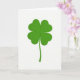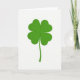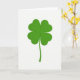 This card features a single four-leaf clover centered on a bright white background, with four heart-shaped leaflets that suggest a quiet kind of affection 💚. The green is deep and springlike, and the leaves look softly rounded as gentle light adds small highlights and faint shadows. Each leaflet meets at a neat center point, and a slim stem angles down with an easy, graceful curve. The wide open white space around it feels calm and uncluttered, like a pause before a friendly note is shared. A short St. Patrick’s Day greeting sits near the top in light green lettering, leaving the clover as the main focus ☘️. Smaller text is placed near the bottom in a matching green, balanced so it doesn’t crowd the image. Up close, you can see the leaf edges and subtle shading that give the clover a slightly raised, almost touchable look.