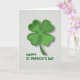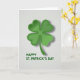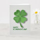 This card shows a rich green four-leaf clover centered on a pale gray background, with each leaf shaped like a soft heart that hints at a close bond between friends or sweethearts 💚. Gentle shading inside the leaves gives them a rounded, slightly curled look, like a careful paper cut-out. A faint shadow beneath the clover lifts it off the page, adding depth without crowding the space. The mood stays calm and affectionate, as if the clover is being offered with a quiet smile ☘️. Below the clover, the words “HAPPY ST. PATRICK’S DAY” sit centered in the same green, keeping the layout balanced. The lettering is simple and modern, with even spacing that mirrors the smooth edges of the clover. The background remains an open, light gray field with soft, diffused lighting and no other objects in view.