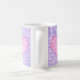 A pretty coffee mug for someone special with three panels containing a pink heart on a violet blue background. The words, 'I love you' are written all over the design in white lettering.