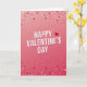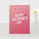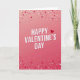 This greeting card features a soft pink gradient background that fades from pale blush at the top to a deeper rosy pink near the bottom, setting a cozy, romantic scene ❤️. Centered in the middle is the message “HAPPY VALENTINE’S DAY” in bright white sans‑serif letters with a slight shadow that makes them stand out. A small red heart replaces the apostrophe, adding a sweet little accent that feels like a wink between two people 🥰. Around the text, tiny hearts in white and red drift downward from the top and rise from the bottom like confetti caught in a gentle breeze. Fine speckled dots, like glittery dust, are scattered among the hearts to give the background a festive sparkle. The falling and floating shapes create a loose border effect, drawing your eye back to the centered words without crowding them. Most of the heart clusters sit near the upper and lower edges, leaving the middle area open and easy to read. The red and white hearts vary in size, with the smallest ones tucked between the larger shapes along the top and bottom.