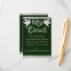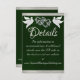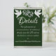 This romantic design features an elegant emerald green background with ribbon borders, linked hearts & doves with details for more information on the front and QR code and monogram placeholder on the back. Available in several colors for your wedding theme. (Ribbon is simulated in the artwork). Designed to coordinate with the "Two Shall Become One - Silver & Gold" Wedding Collection. To change details, click «Personalize». To move the text or change the text size, font, or color click «Click to customize further»