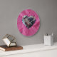 This custom wall clock features a Valentine love theme with a photograph heart frame. The background is a blush pink silk textured pattern with diamonds style frame. A sample photo is placed in the center.