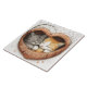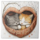 This enchanting watercolor illustration features two contented cats snuggled together in a cozy, heart-shaped knitted bed. The warm, earthy tones of the soft fabric contrast beautifully with the delicate fur of the gray and orange tabby cats, both peacefully sleeping with serene expressions. Surrounding them, gentle branches and scattered hearts enhance the dreamy, affectionate atmosphere. The phrase "Heart full of purrs" is elegantly scripted across the bottom, perfectly capturing the warmth and love shared between these feline companions. This artwork radiates comfort, companionship, and pure serenity—ideal for cat lovers and those who cherish the quiet beauty of love and togetherness. Use as a trivet, backsplash, home decor and more.