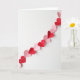 This greeting card shows a diagonal garland of paper hearts stretching from the upper right to the lower left on a bright white background. The hearts alternate between soft pastel pink and deep red, and their folded paper edges give them a gentle, slightly raised look. A thin red thread runs through each heart, and you can even notice a bit of fraying that makes it feel real and close to home. Soft light creates small shadows under the hearts, adding depth without making the scene feel busy. There isn’t any printed message on the front, so the open white space leaves room for your own words inside. It feels meaningful because the simple hearts and the shared thread suggest staying connected, whether it’s romance or close friendship 🥰.
