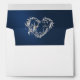 This design features a silver scroll heart on a blue background on the inside flap, borders on front with heart monogram & glitter on back flap. (Glitter is simulated in artwork - not real glitter). Personalize the return address on front and the heart on inside flap can easily be replaced or removed if prefer. Available with different colors for your wedding theme colors. Designed to coordinate with the "Romantic Scroll Hearts & Glitter Wedding" Collection. To change details, click «Personalize». To move the text or change the text size, font, or color click «Click to customize further»