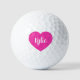 Golf balls shown with a pink heart shape with a sample name, customize this item and change the sample name to yours with this template.