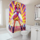 This shower curtain has a pop star making heart hands on it.