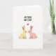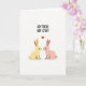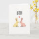 This card shows two long-eared, humanlike rabbits facing each other on a white background, their heads tilted in close as if sharing a quiet hello 🐇. One rabbit is soft yellow and the other is blush pink, and their small black eyes give them a gentle, friendly look. Their noses nearly touch, and the tiny gap between them reads like a tender pause in a sweet moment. A red heart floats above and between their heads, drawing your eye to the connection. Across the top, the phrase “HEY THERE HOP STUFF” sits in loose, hand-drawn lettering in black. The shapes are simple with smooth outlines and light pastel fills, and a few faint shadows beneath the rabbits keep them grounded. The heart is a bright red shape centered above their faces, with the text aligned near the upper edge and plenty of open white space around it 🌷.