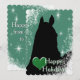 A green starry background design with the black silhouette of a horse and a green heart. Customize with your personal holiday greeting, message and signature. The perfect holiday card for your horse lover!