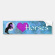A blue/green background design with the black silhouette of a horse, a white/purple gradient moon, a magenta heart and the word "Horses".