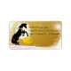 A golden starry background design with the black silhouette of a Christmas Horse wearing a gold bow. A beautiful holiday address label for the horse lover in your life.