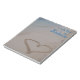 Pretty beach theme personalized notepad with a heart drawn in the sand by tropical blue ocean.. Cute personalized notes with a customized name template and text above the name reads "a note from."