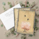 Pale Coral Heart Leaf Tree with Two Whimsical Swallows Flying On a Swirly Faux Burnt Parchment Card