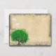 Emerald Green Heart Leaf Tree with Two Whimsical Doves Flying On a Swirly Faux Burnt Parchment