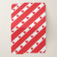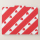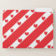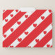 Red and white angled strips with red hearts lined in the white sections.
