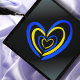Heart, Love and Peace, Blue and Yellow, Support Ukraine Graduation Cap Topper. (The background color is a bit lighter on the top and bottom, that's part of the design, not a print error.)
