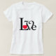 A Love T shirt with a red heart for the letter o in the word. A one of a kind way to share the love. Can be customized to your choice of shirt color.