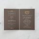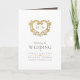 Heart monogram wedding program. Personalize this wedding folded program with your own wedding ceremony details wedding party and thank you message. Decorative gold heart design circling your own monogram initials in dark brown and gold on white. Other colors and matching wedding items available. © Original leaf drawing and design by Sarah Trett for www.mylittleedenweddings.com on Zazzle.