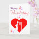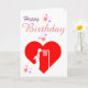 Netball themed greeting card template with netball picture and heart design. Custom blank birthday card for netball player or fan.