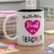 Heart of a Teacher Gift Pink Black Script Two-Tone Coffee Mug. The letters for heart are within the word "teacher". Fun design in a modern script font to customize for you or your child's teacher. Let them know they are appreciated with a thoughtful custom gift. Personalizre the teacher's name, the school year or current year, and name of the child. Text is editable, delete any text you wish to remove. Design is original to Cross Fox Design.