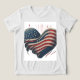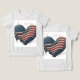 This powerful and evocative image depicts an American flag shaped into a heart, symbolizing love, patriotism, and national pride. The design's distressed texture and bold colors create a striking and memorable piece.