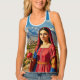 Women's All-Over Print Racerback Tank Top, White Piping, S
