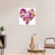 Lip shapes in various shades of purple form into a heart shape. This poster is perfect for a Valentine’s Day decoration or a beautiful piece of art any time of year!