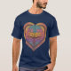 This intricate t-shirt design features a vibrant and detailed illustration of a human brain, styled in a way that seamlessly blends into the shape of a heart. The brain is depicted with a gradient of colors, starting from cool blues and transitioning into warm pinks, yellows, and oranges. The brain's convolutions are highlighted, giving it a 3D effect, while the surrounding heart shape is adorned with radiating lines, symbolizing energy and connection. The overall design merges the concepts of intellect and emotion, making it a unique and thought-provoking piece of wearable art. Perfect for those who appreciate science, psychology, and artistic expression.