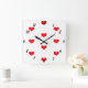 Heart Pattern Cute Red White Custom Valentines Day Square Wall Clock