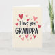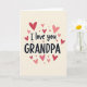 This card features the message “I love you GRANDPA” in the center on a creamy off-white background. “I love you” is written in a flowing, cursive-style lettering that feels close and caring, while “GRANDPA” appears in tall uppercase letters that stand out clearly. Around the words, a scatter of hearts fills the space like confetti, with shades ranging from deep red to soft pink. The hearts vary in size, and some look slightly darker or lighter, giving the design a gentle sense of depth. Everything is simple and focused, which makes the message easy to notice right away. It feels meaningful to give because it puts love and respect for Grandpa front and center without needing anything else 🥰. It’s a sweet way to share Valentine’s Day sentiments ❤️.
