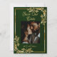 This romantic Save the Date Card features a placeholder for a photo on an elegant emerald background on the front with an elegant gold frame. The back has room for additional information and heart monogram for couple's initials. Designed to coordinate with the "Doves, Heart & Gold Leaves" Wedding Collection. To change details, click «Personalize». To move the text or change the text size, font, or color click «Click to customize further»