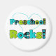 Colorful text in lime green, black, and aqua reads "Preschool Rocks!" on preschool teacher and preschool student T-shirts, buttons, tote bags, stickers, cards, and more!