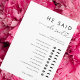 Enjoy your bridal shower with this "He Said She Said" game, featuring delicate heart script, 10 custom questions and personalized back. Easily add your own details by clicking on the "personalize" option.