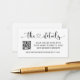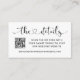 Make it easy for guests to find your wedding information with this charming details card featuring a scannable QR code alongside flowing script with a sweet heart flourish. The clean black and white design is modern and minimalist while coordinating with your wedding suite. All text and the QR code are fully editable — customize the website URL and wording to fit your needs.