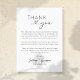 Minimalist wedding thank you cards featuring a simple white background, the title 'thank you' that incorporates a love heart, a personalized thank you message, your names, and wedding date.