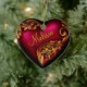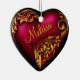Beautiful heart shaped ornament with gold flourish scroll on a red heart, with customizable text to personalize. Makes a perfect gift for birthdays, anniversaries, or Mom on Mother's Day. Hang on the wall, decorate a gift package, or tie around the neck of a wine bottle.