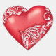 Beautiful heart sticker with silvery white flourish scroll on a red colored heart, perfect for adorning scrapbook pages or used as an envelope seal.