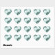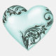 Beautiful heart shaped sticker with silvery white flourish scroll on a aqua / soft blue green sea glass color, perfect for adorning scrapbook pages or used as an envelope seal for weddings, bridal showers, baby showers, and more.