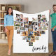 Heart Shape 36 Photo Collage Family Script White Fleece Blanket