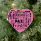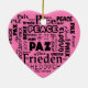 Heart shaped Multilingual peace Christmas decoration - pink and black. This is a multiple language peace design I recently updated from an original I created some 25 years ago. It became famous on button badges and postcards as well as shirts. The original was created in Letraset - if anyone remembers that!? Now available again in a variety of image styles for the 21st century!!