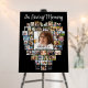 Create a heart shaped photo remembrance tribute display board for a funeral memorial service, wake, visitation or Celebration of Life event featuring an easy-to-upload photo collage template with 45 pictures in a variety of squares and rectangles to accommodate individual and group photos, your custom title (shown with IN LOVING MEMORY), name and dates in your choice of font styles. OPTIONS: The sample is shown in a 22x28" size; other sizes available (choose Custom Size for even borders by changing the height and width proportionately AFTER clicking the UNLOCK icon). You can also transfer the design to a poster, banner, tapestry backdrop or other products or have the designer convert it to a digital download file for printing locally. ASSISTANCE: For help with design modification or transferring the design to another product or converting to a Download file, contact the designer BEFORE ORDERING via the Zazzle Chat MESSAGE tab below or email makeitaboutyoustore@gmail.com.