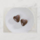 Heart shaped chocolate candies on a plate postcard