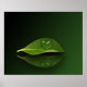 Lovely romantic illustration featuring a green leaf with a heart-shaped drop on a reflecting ground.