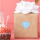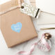 This heart shaped sticker features a customizable "It's a Boy!" gender reveal announcement in a fun white font on a bright blue inkspot background.