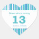 Heart Shaped Personalized 13th Birthday Stickers: In blue and white stripes. Add the Birthday name.