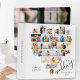Heart Shaped Photo Collage to customize with 29 of your favorite wedding pictures. Your wedding photos are displayed in a mix of square, landscape and portrait formats to automatically form the heart shaped photo collage. The front cover is lettered with "our wedding" in modern typography and elegant script and you can also add your names, wedding date and a personalized spine title, such as, our wedding album. This design is white with black typography. If you would like different colors, click "customize further" - alternatively, please browse my store.